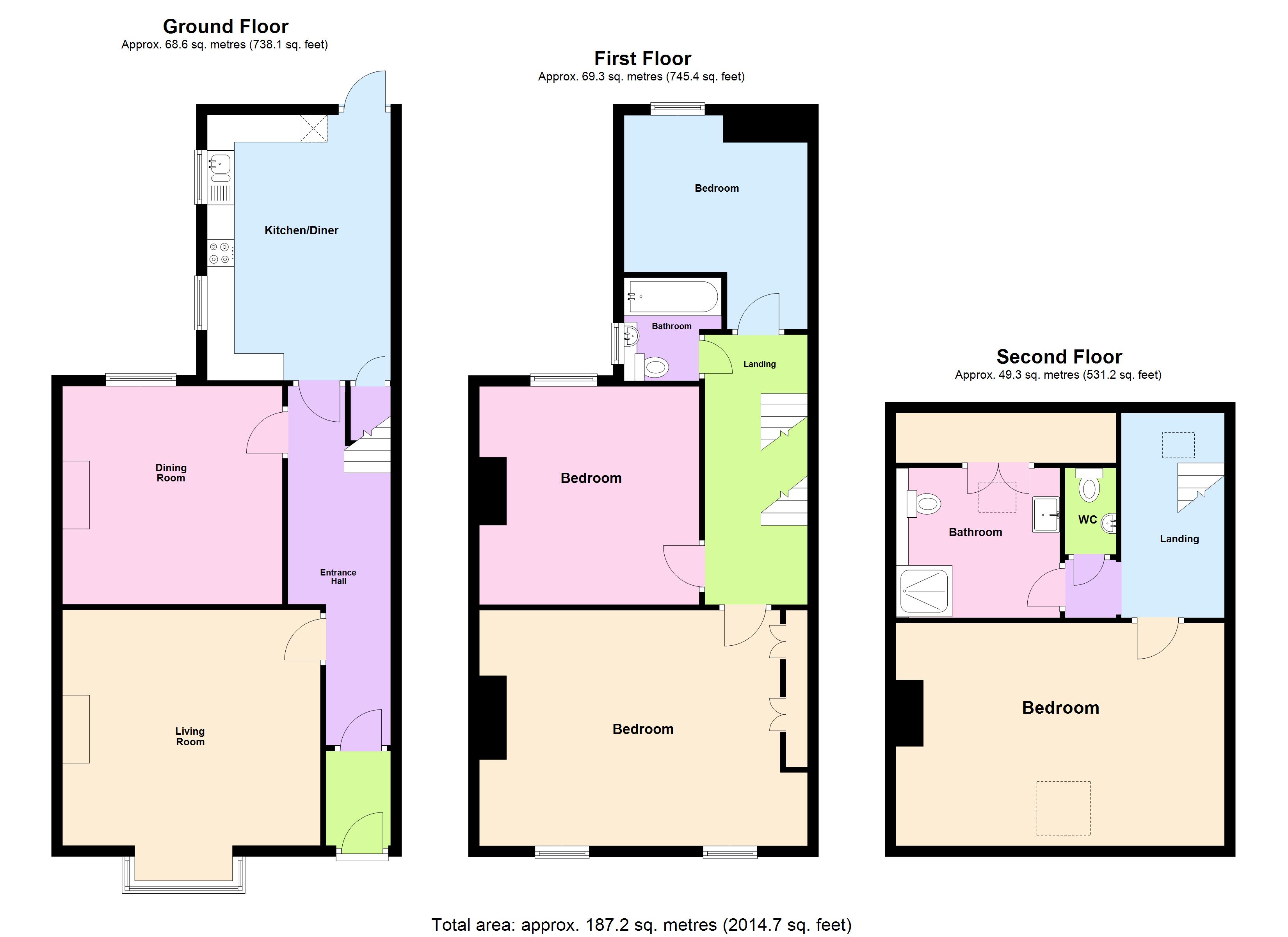 Landing Doors lead to three bedrooms and bathroom/WC.