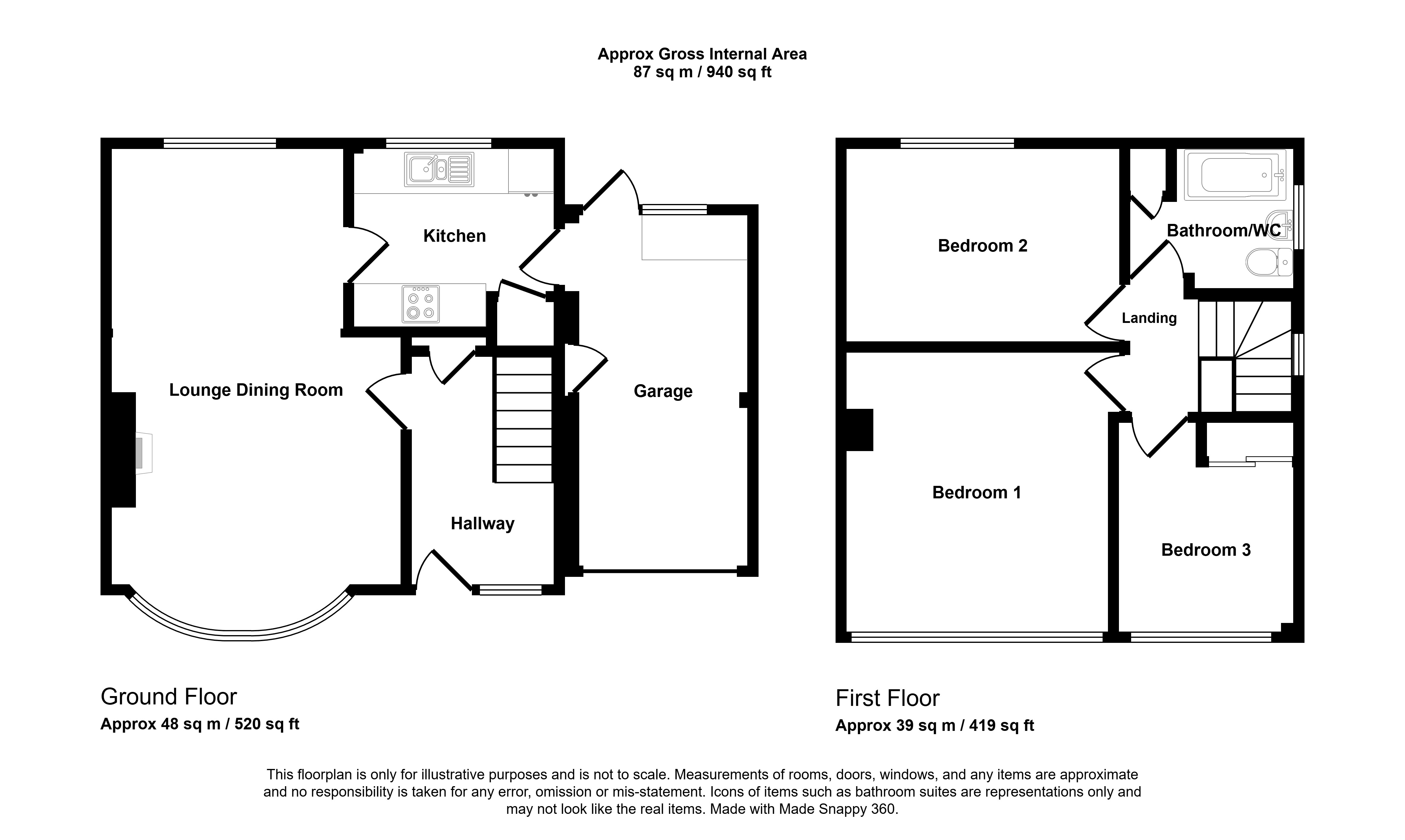 Entrance Hall UPVC entrance door, staircase to the first floor. Door leads to the lounge, built in cupboard, radiator.